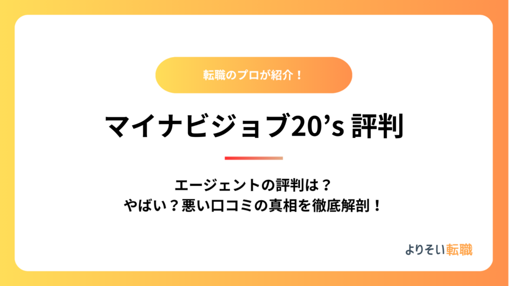 転職を考えている20代の方にとって、「マイナビジョブ20’s」はどんなサービスなのか気になる方も多いはずです。 この記事では、マイナビジョブ20’sの特徴や仕組み、実際...