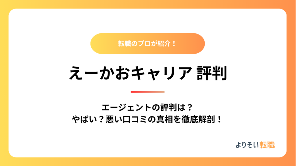 転職エージェント選びで迷っている方に向けて、20代・第二新卒・既卒の就職・転職支援に特化した「えーかおキャリア」の評判や口コミ、実際の利用者の体験談を徹底解説... -